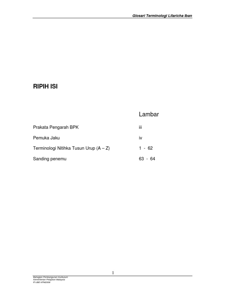 Glosari Terminologi Litaricha Iban Pemuka Jaku Glosari Terminologi Litaricha Iban tu disedia ngambika bisi nyadika malin belajarka Jaku Iban di sekula. Dalam bup jaku dalam Janang Ensiring Dr. Dalam bup nya mega dalam jaku Melayu madahka sastera tu datai ari leka jaku Sanskrit ti disebut castra reti nya bup.
